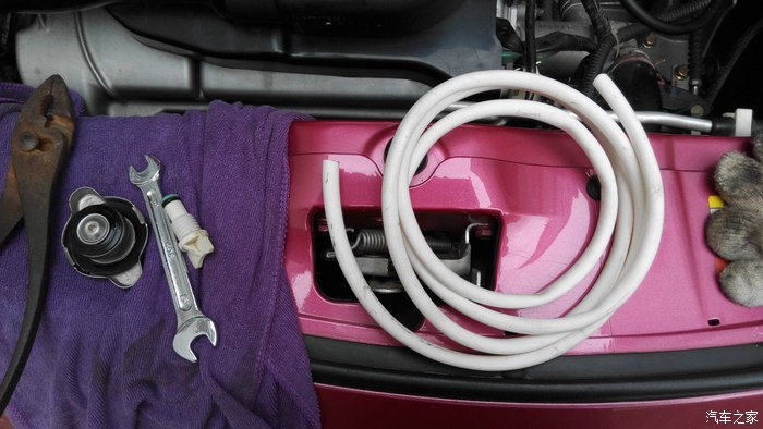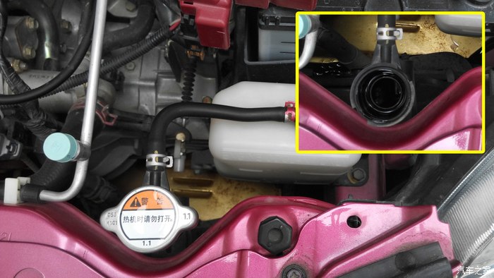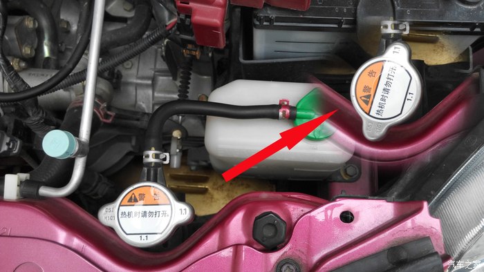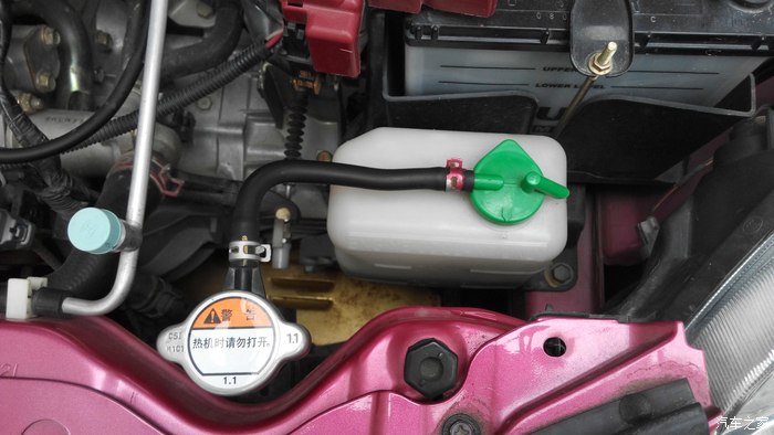 (注意:当发动机温度上来以后,就别继续添加防冻液了,避免不必要的炸缸呀。)