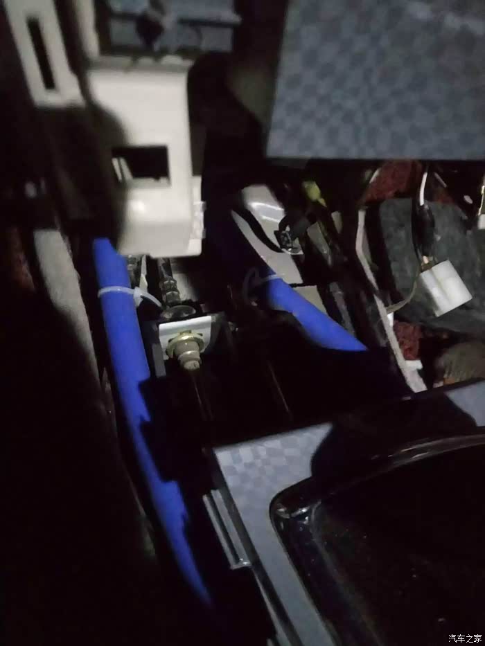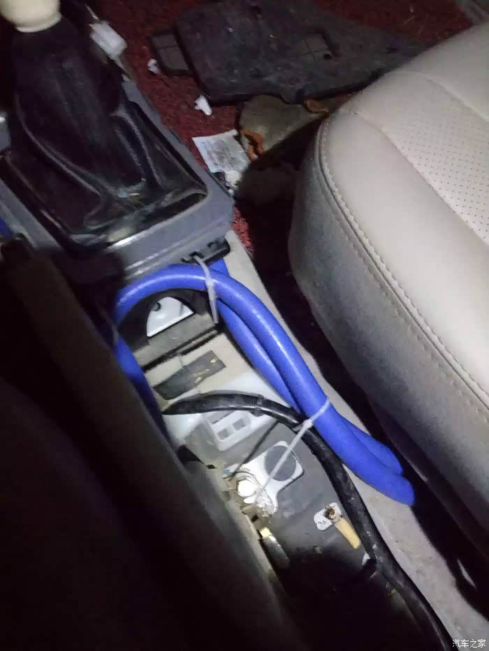 从车内中控台左面出来、有足够的空间铺管