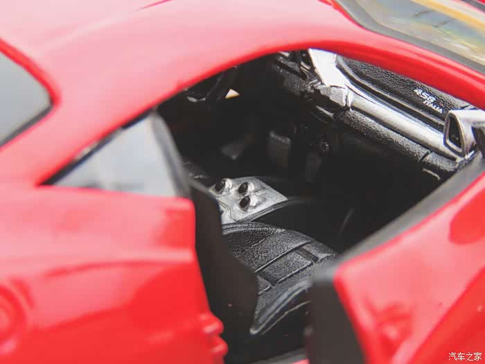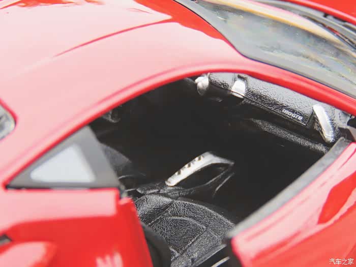 1:24的模型最“惨”的部分就是内饰了,这个458模型从主驾驶侧看唯一值得肯定的就是法拉利的跃马logo印的挺清晰... 下方的刹车踏板都快和方向盘一般大了...