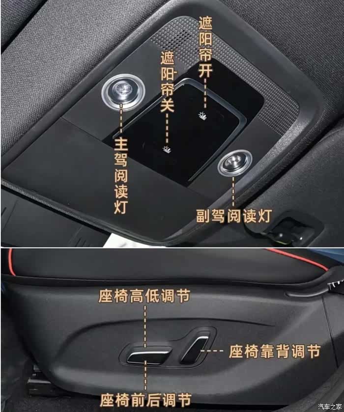 上:遮阳帘开闭、主副驾触摸阅读灯