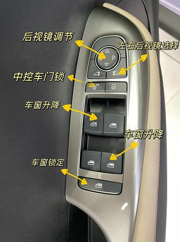 下:后视镜调节、左右后视镜选择、中控锁止、四门车