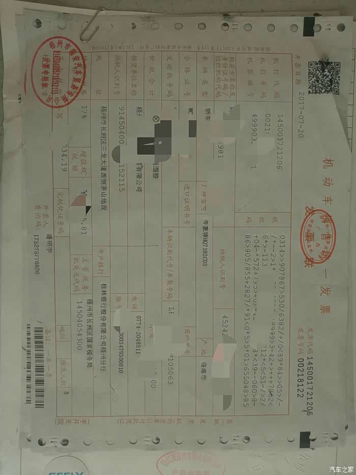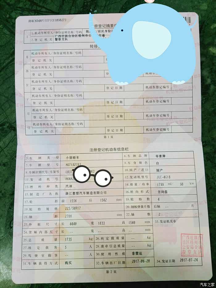 。很惊人哪。提车时,汽贸店送了脚垫,发动机护板,还有一个很差劲的行车记录仪