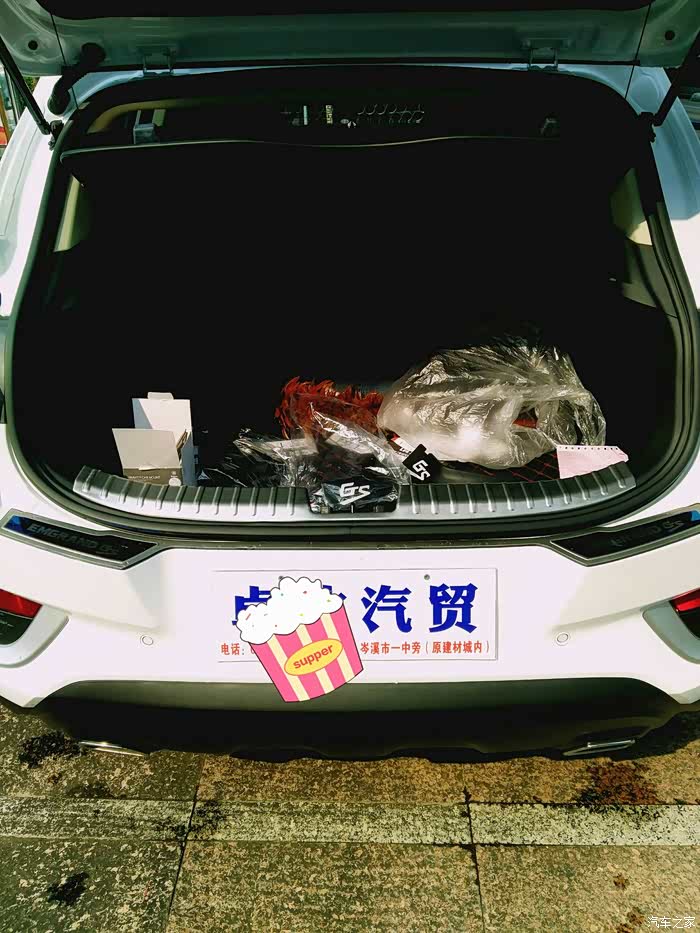 自己加装的后备箱防刮条。后备箱有点凌乱,请忽略。