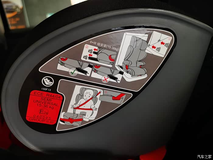 这款座椅原厂定制,适用3岁以上幼儿使用。带有ISOFIX接口的安全带组件。硬接安装。