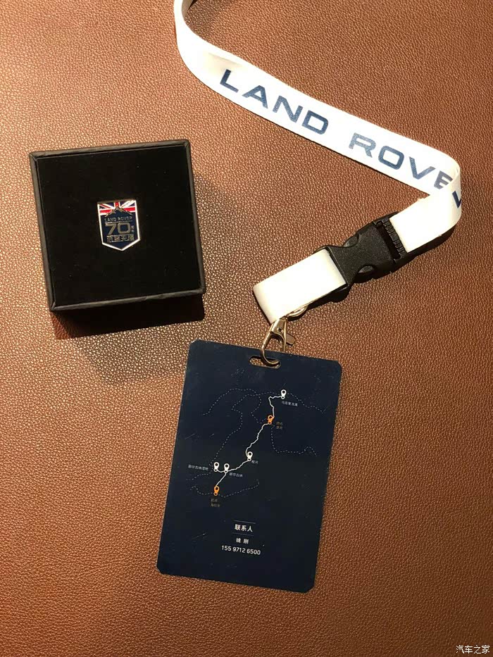 今年是路虎这个品牌的第70年,拿到的胸卡和标志着路虎70周年的纪念徽章。