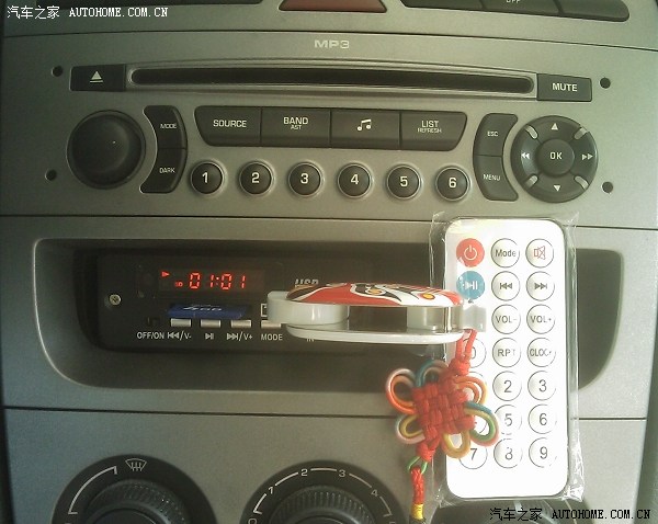 花了2小时功夫安装,关键是不想破环原车结构,电源12V采用CD机后的PART C碟机供电,1脚为地,3脚为12V(这个电压时刻都有,所以如果不用最好把USB机头的开关打到OFF),之后把USB机头的音频输出左、右和信号地接到CD机part B 的Aux1左、Aux1右和Aux1地即可,记得用PP2000开通一下Aux1。美妙的音乐可以不限量放松了,就看你的U盘和SD卡容量了,我用了4GB的SD卡和U盘均迅速读出。有些车友反映这款USB头收音效果不好,可能是没有把天线接上,在天线端焊上一段导线,感觉效果比原车的收音效果要好些。