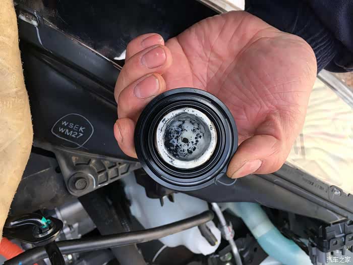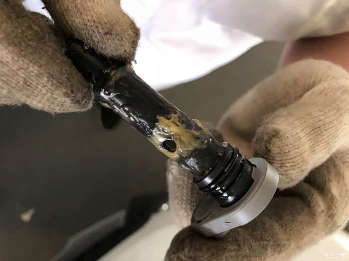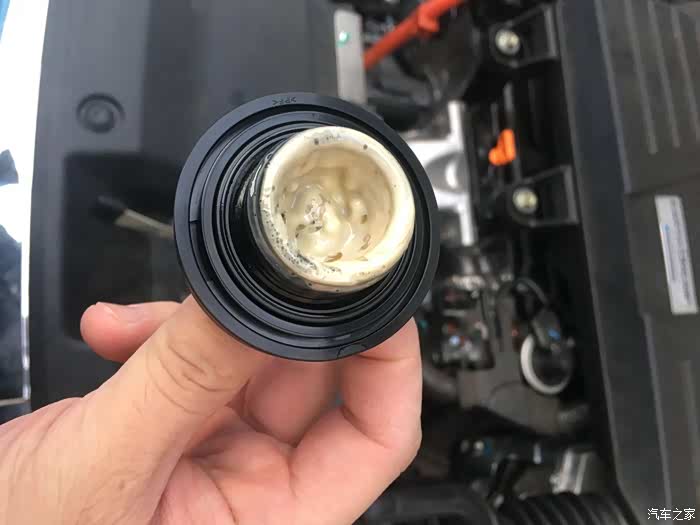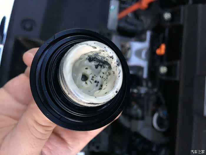 4月19日发现机油再次超上限了,去了4S点还有让我等,我是真醉了,没办法由于第一次厂家给换机油不算首保,约的今天做首保,自己加钱换的嘉实多机油,不能看着自己的车天天产奶了,这次保养的依然看到PVC阀乳化物很多,还拍了几张拆下阀体内部的照片,乳化物令人震惊。