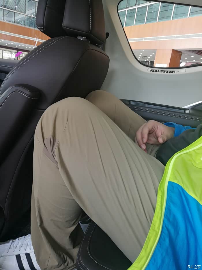GM6第三排还是不能做到完全承托大腿,但相对来说不管是前后距离,还是坐垫长度,都比较好