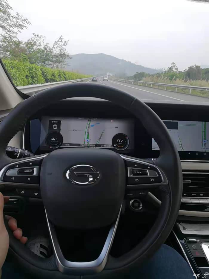 GM6的一体化双屏设计,除了好看以外,其实还有很大的实用性。驾驶来说,驾驶员的视线转移容易引起手跟视线一齐转移,之所以仪表台设计在方向盘下方,就是为了保持驾驶员视线在同一条垂直线上,避免向左右转移。很多车(包括嘉际)都把导航提示放在仪表台,而像GM6一样整个地图直接放在仪表台,全屏显示的车非常少。传祺的一体化双屏设计,不只是考虑内饰好看,连驾驶视线都考虑在里面,可见设计功力不凡。