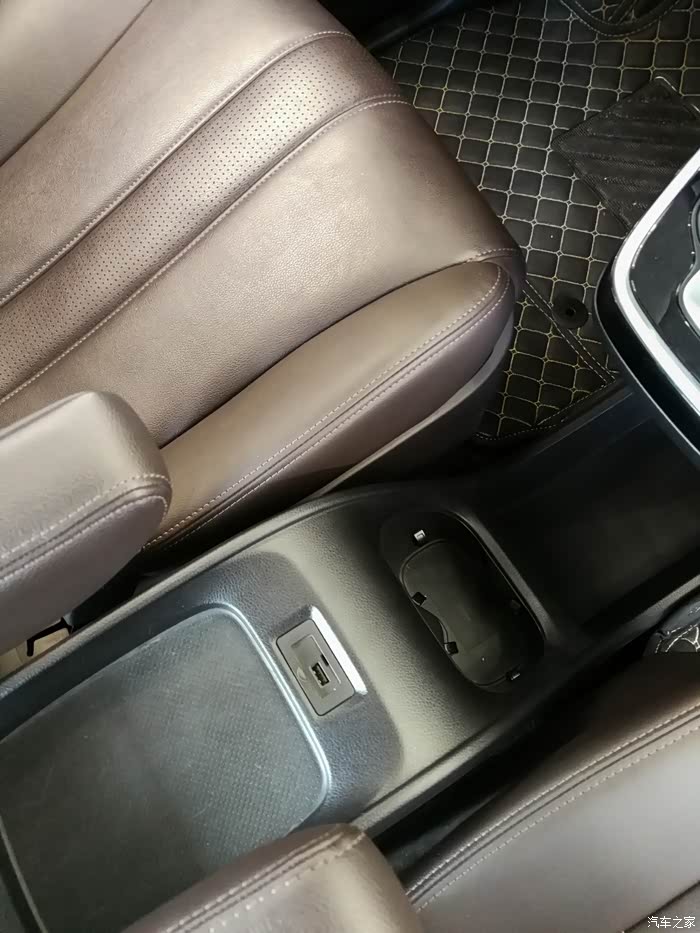 GM6驾驶席中间有很大的储物格,背包也能整个放下,扶手旁边的平面储物空间具有无线充电功能,还有USB接口