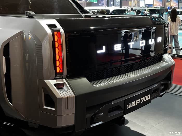 咱们一台一台的看,先说一下这个F700。这台车定位是全地形豪华电混越野皮卡,采用鲲鹏超能混动CDM-O系统,搭载2.0TD混动专用发动机、2DHT混动专用变速箱、4C双层神行电池及超级电驱2挡P4电机,可实现同级最强动力输出,油电协同,兼顾强悍越野与高效节能。纵横F700配备同级领先的智能舒适座椅,支持通风、加热、按摩与多场景模式联动,融合高定皮质与人体工学,打造越野旅途中的尊享后排,刷新皮卡豪华体验上限。作为一款皮卡车型,3.5吨硬核牵引能力同级领先,支持智能拖车模式与防摆动功能,结合拖车取电口、牵引风扇等拓展配置,解锁拖挂房车、机车、露营舱等多元户外生活方式,越野即生活场景