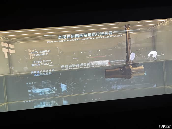 这就是奇瑞自研的两栖专用航行推进器,搭载在捷途纵横G900上。以专属推进器与船舶级结构设计,将水陆两栖能力从“应急使用”跃升为“常态化应用”,技术路线更为激进先锋;相比之下,友商仍聚焦于陆地越野与应急浮水,更贴近传统豪华越野的使用场景。航行推进器具备800V高压平台,2500N推力、高转速抗空化叶轮,高效喷泵结构、IP68级防水、船舶级防锈处理,核心部件可在1.5米水下运行无故障。通过6轴陀螺仪智能助浮系统实现航行姿态稳定,乘员舱可承受20kPa水压与5m/s水流,保障极端环境下的安全。使用时陆地与水面模式无需手动操作,系统自动识别场景并启动推进器;浮水后无需返厂检修,日常使用与普通车辆保养流程一致;适用于河流、湖泊、沿海滩涂等场景,扩展越野探险的可能性