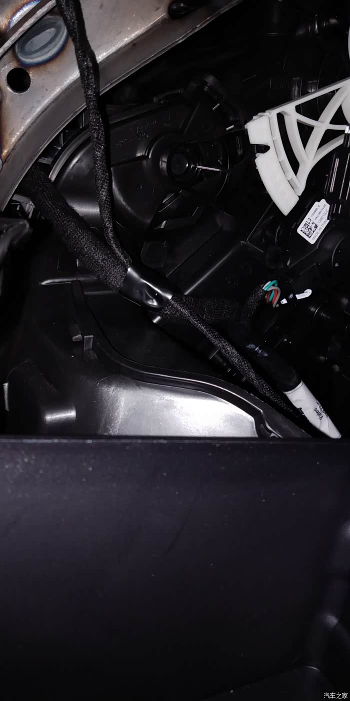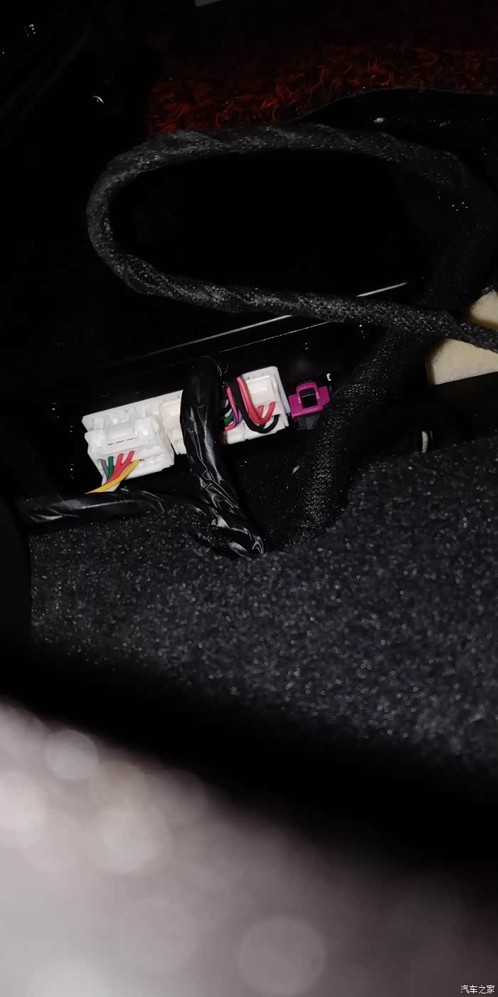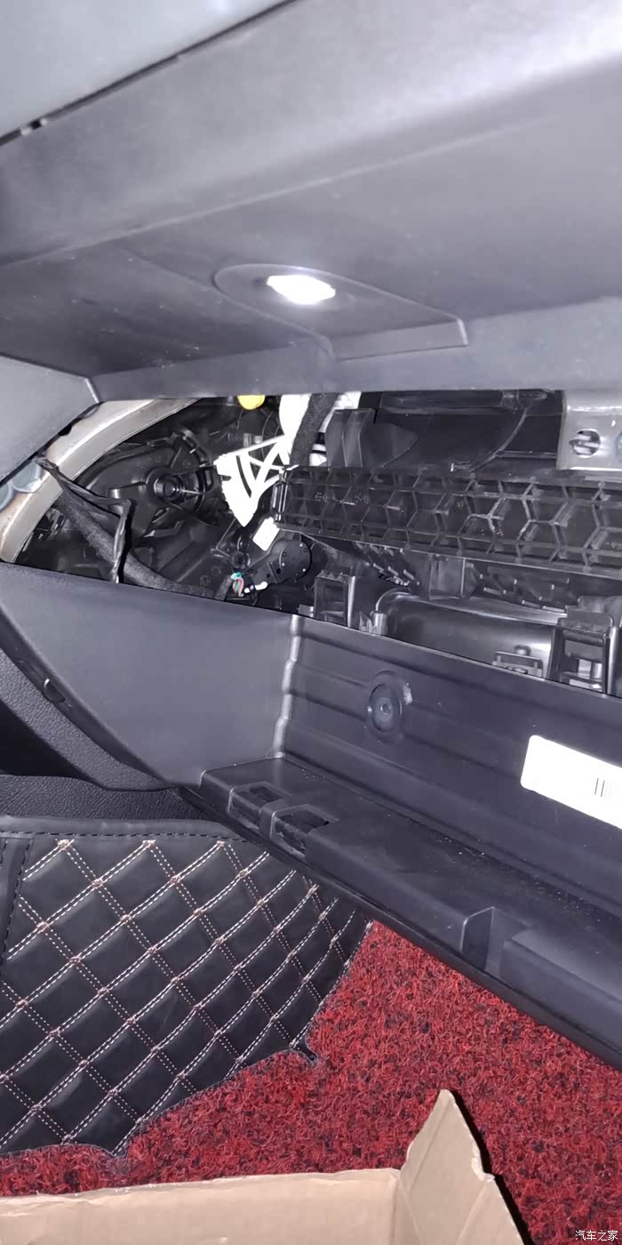 线从里面穿下来手伸进去就能够着,穿到副驾驶脚底下,用胶带固定一下,防止异响