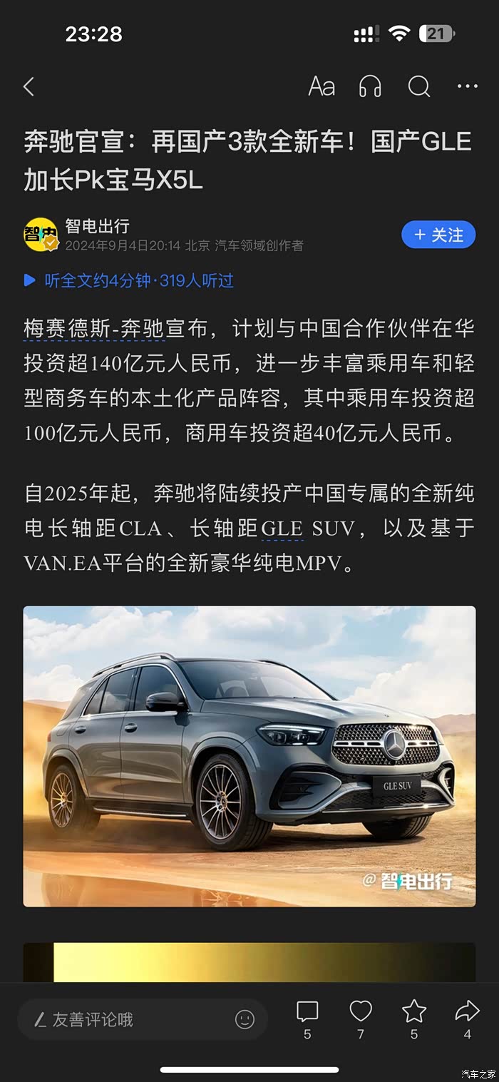 奔驰官宣了GLE的国产计划,估计是对国产X5现在每个月七八千辆的销量看着眼馋。一般来说从官宣到路试,排产,上市估计要1年的时间吧,也就是说最快GLE加长国产会在25年下半年上市。估计到时候价格会贴近国产宝马X5,可能会比X5略贵个2-3万吧?