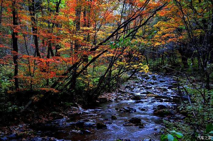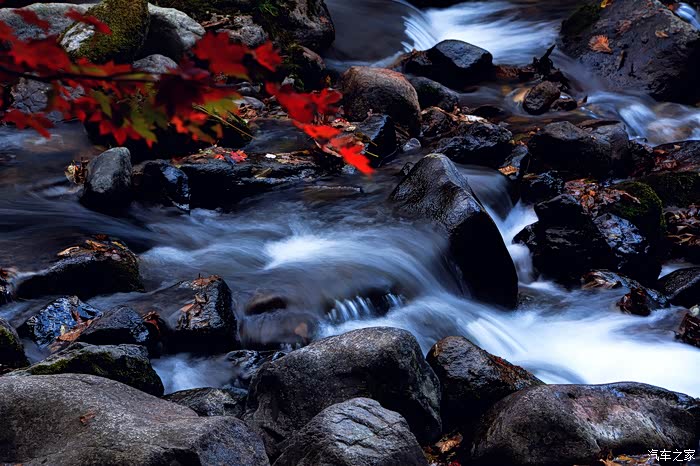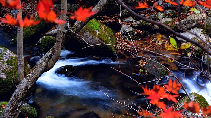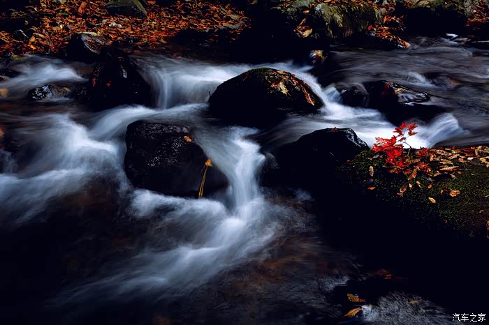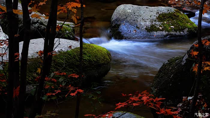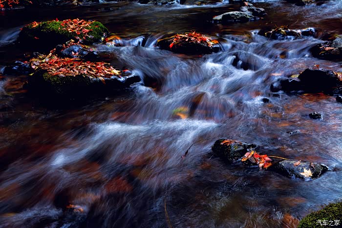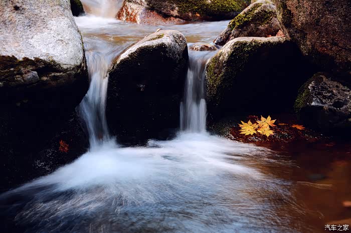 夏日鲁莽的河水变成了秋日温柔的溪水,它们由上而下一路流下来,在层叠的石头上滑落,形成了美丽的溪流。