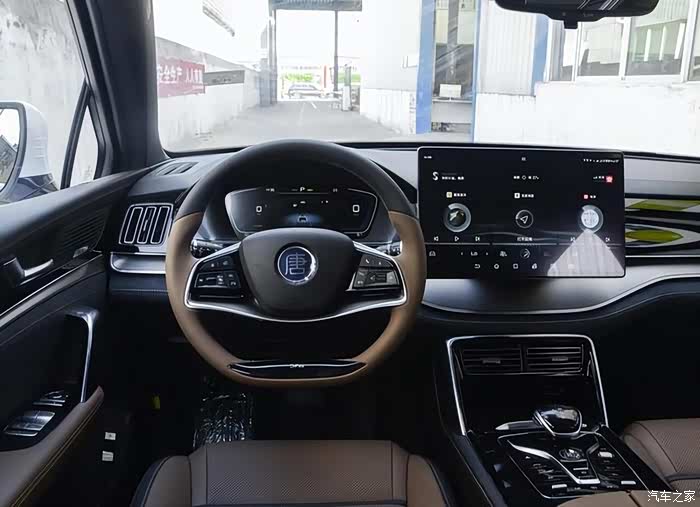 当然唐DM-i的内饰不仅大空,内饰的设计风格也让人耳目一新。车内采用了多种材质,大面积的高级真皮包裹,加上翻毛缝线,感觉非常高档,还有钢琴烤漆和金属拉丝装饰板。用料和搭配都很讲究。中控的大屏依然是新车最大的亮点之一,并且支持“iPad”式的自适应旋转,所以科技感依然十足。