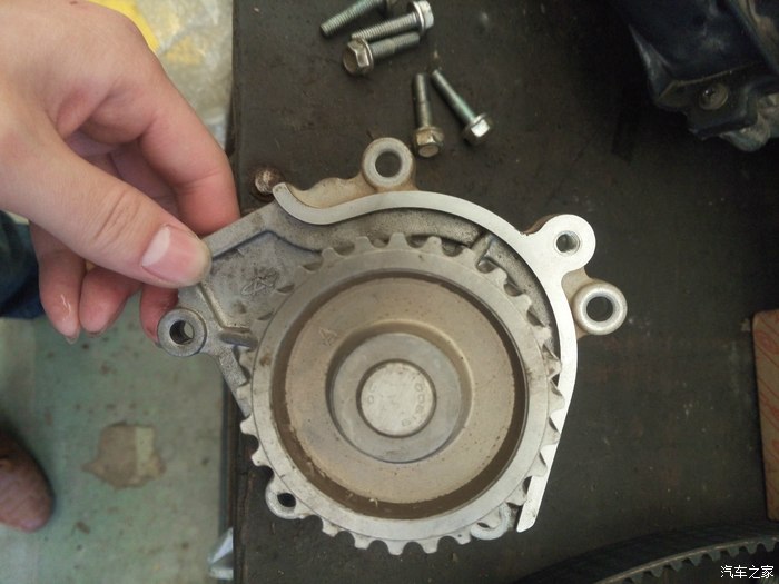 新的水泵,这次要换掉,换旧的上去。前天才换上去的,今天又拆下来。。以后是不敢网上买这种重要配件了,怕扯不清!!扯不清到底是配件问题还是安装问题,以后就在4S换原厂!质量看起来还不错,不过里面轴承肉眼是看不到的,要有异响轴承最大怀疑