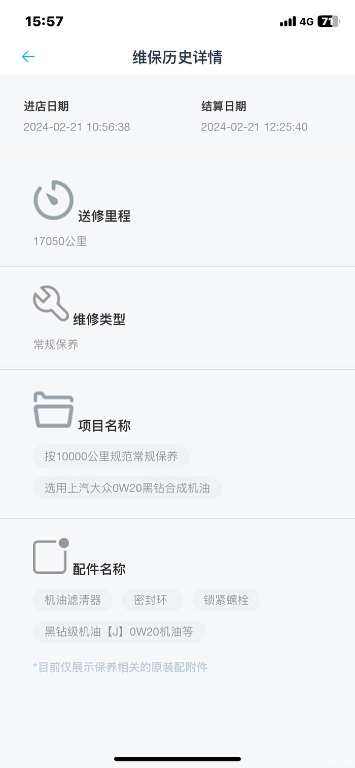我的车从买到现在一直都是在4s店就行保养,今年爱车就进行了一次保养,主要就是日常基本保养,使用的机油的黑钻全合成机油总共花费680元。
