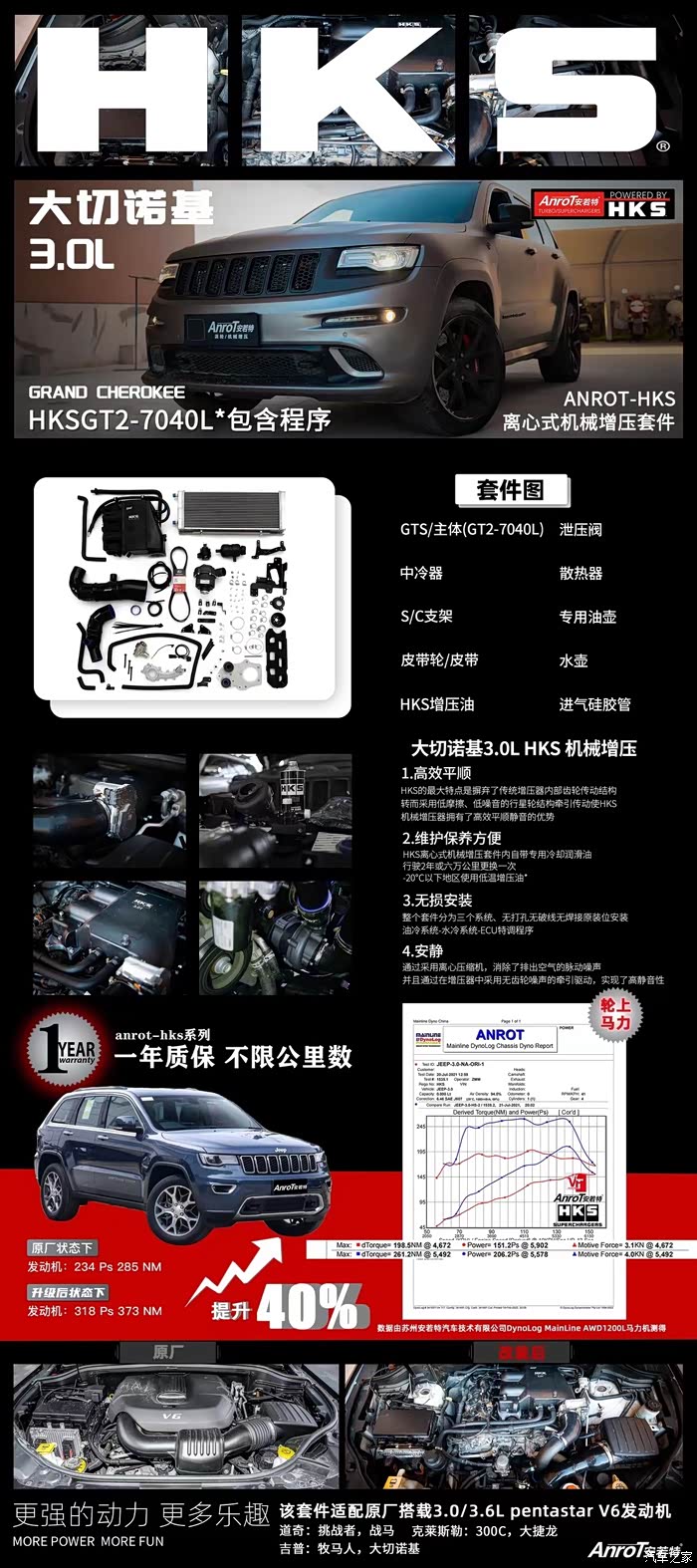 最后,实践大切诺基3.0L动力升级完HKS机增之后,马力由234匹提升至318匹,足足提升了84匹马力,远超于比3.6L的动力数据。最重要的是价格只需车型差价的1/3即可拥有大切诺基机增版享受!
