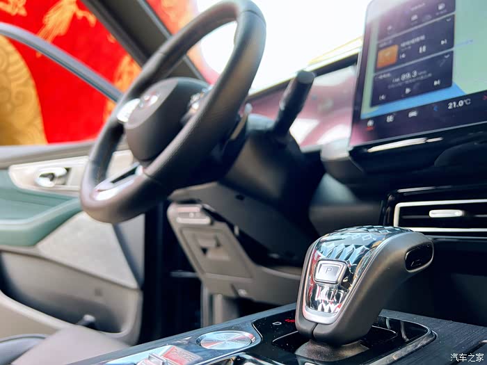 电子水晶换挡杆,设计美观又好看。虽然不比真水晶的奢侈,但握感也是满满。集合启动、手刹、转换、泊车于一体,操作也很方便