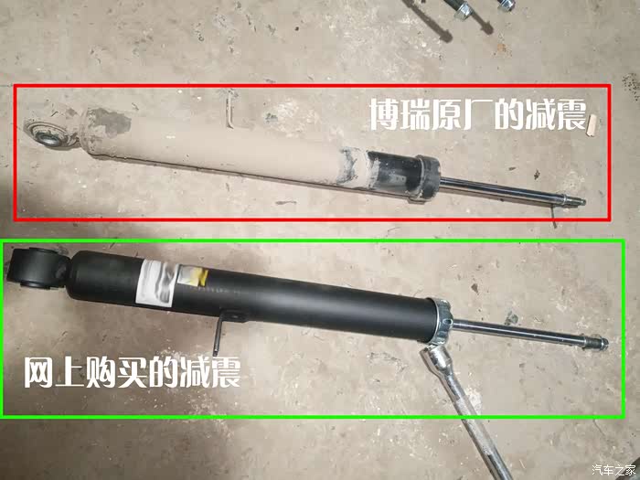 过了4天减震到了,晚上找了个时间送到朋友的修配厂,拆了2个减震器我拿下来看了一眼,已经一点回弹都没有了,而且和我买的减震对比了一下,感觉吉利太坑了,这减震是啥质量了,找了一圈没有生产厂家,没有生产标识,型号都没找到,不是我骂人,吉利你长心了么?减震你也抽条呀,好好回去管管你们的采购吧,收了多少黑心钱,弄这么差质量的减震。东北天气冷拆了2个就受不了了,我就回家了,过了4。5个小时朋友打电话让我去取车,穿上棉衣急速跑了过去,点火,开动,立马找以前总跑的破路去跑一下,试试效果,跑了一圈,这还是我的博瑞嘛 ?错觉吧,怎么减震这么舒服,软软的,过坑只是减震一弹就过去了,前轮的异响也没有了,内饰异响也变的很轻微了,过弯的时候侧倾也好很多,过大坑也不像以前跟掉坑里一样,咣当咣当的,而是感觉有弹性的通过,我擦减震差这么多嘛 ,才200多一支而已,心中一万个OOXXOOXX骂4儿子和吉利,坑死爸爸了,因为一个减震3年去了不下二十趟4S店,换这个换那个,自己就动手拆了无数回的棚顶,中控,门子,博瑞我都拆个遍了,请问吉利的所谓工程师是干什么用的,换个减震就能解决很多问题,还是你们想让车坏快点,故意安装 质量不好的,好让我们早点换车?不过就这问题这么多,大哥你认为我们下次还会换吉利的车了嘛 ?真心想想国产车为啥发展不起来,总是自己糊弄自己,你们整天赚着国人的钱,可是却不为国人着想,可悲!更可悲的是支持国产车的人们,有一部分是钱不太充足,有一部分人是爱国,可是你伤了我们你们知道嘛 ?你以为我们很爱去找们修车嘛 ,还是羡慕着人家合资车开着省心。。。哎上火。都长点心吧,钱不是一天赚的,别断了自己的后路。