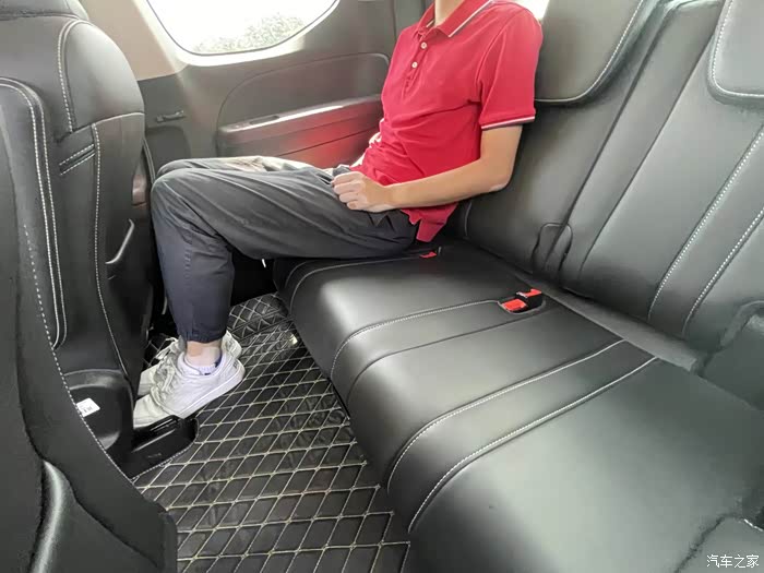 在保持二排位置不对的情况下,第三排乘客基本上没有腿部空间了。