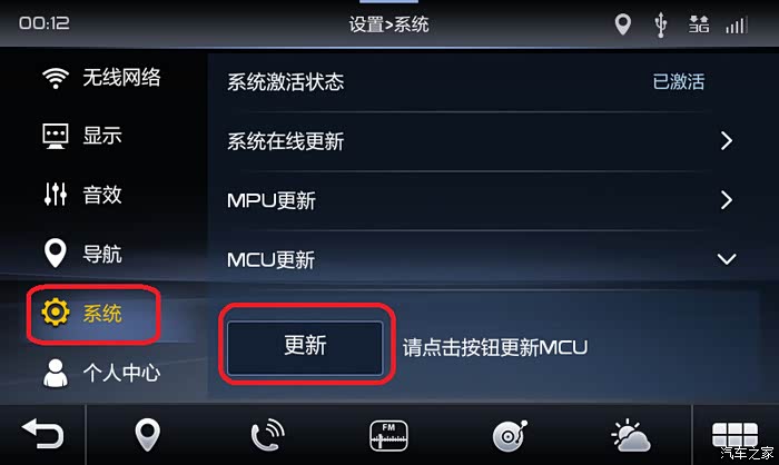 1.1.2进入设置,选择[系统]=>[MPU更新],然后点击[更新]按钮开始更新,这时候设备会自动重启,自动进入更新界面完成更新,整个过程大约5-7分钟;
