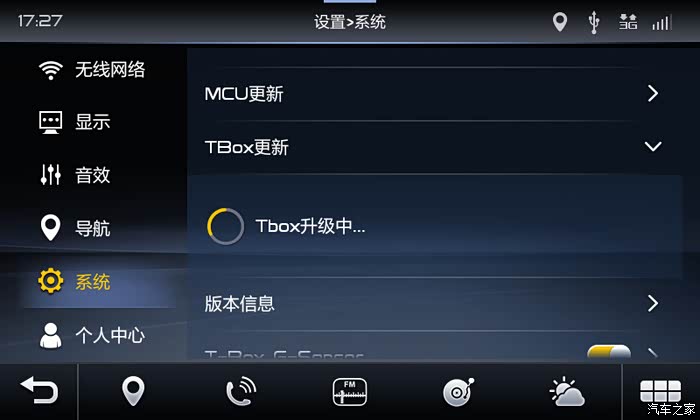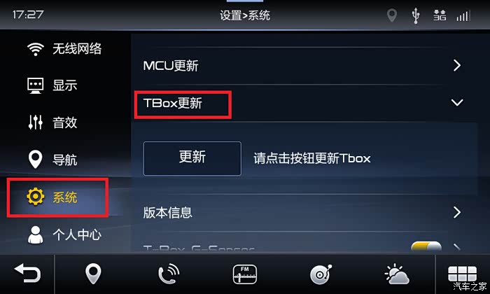1.3 进入[设置] --[系统],选择[TBox更新],点击[更新]按钮