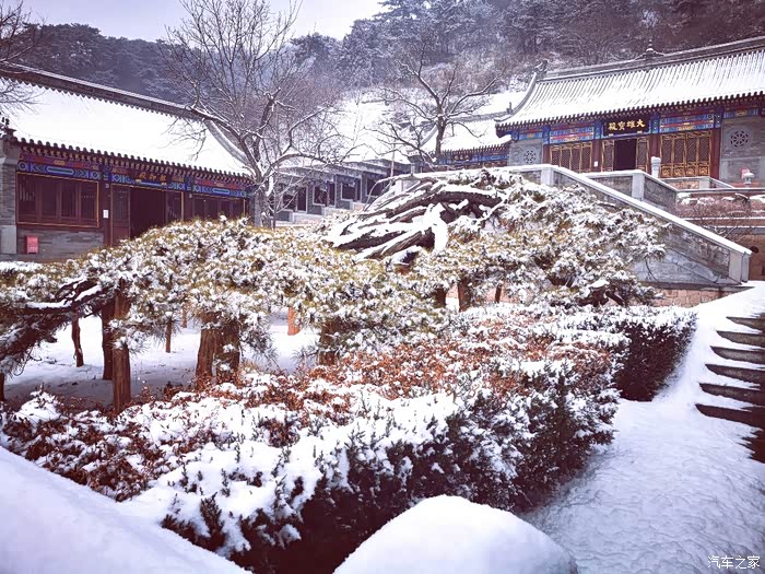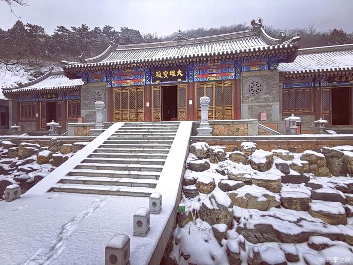 到达山顶延寿寺的两台车。下大雪上延寿寺好汉坡很油挑战。suv里我个人认为,只有森林人傲虎xv换at胎可以上。硬派带后锁的上也不轻松。不服可以自己尝试。