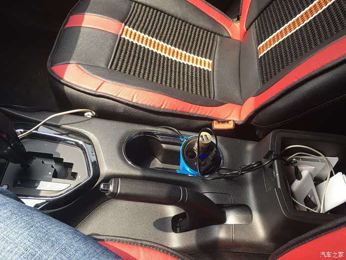 中控台下面储物空间 可以放置手机等杂物 2个USB接 一个点烟器接口 接口非常丰富