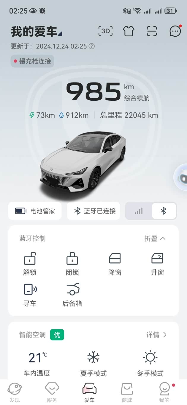 有一次工作到半夜12点后,跑到空电,然后在充电站用快充充到70%左右,突然停充,我以为充满了,想打开app确认一下,手机app无法连接到她,进车里,启动提示无法进入EV模式,她直接启动发动机(具体提示内容忘了,图片也删了)吓得半死,完全不知怎么回事,但纯油能正常行驶。(好吧,这应该是属于大问题了喂。)因为深夜,把她开回家后,第二天联系了4S店,打算开过去给看看,结果恢复正常了。。。(最怕这种,有问题然后自愈了)还是去4S查了,没结果,啥啥都正常