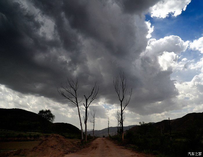 时间被严重耽误,后果很严重。我们的计划是天黑前赶到孤石军马场,此前争取在穿老掌沟的路上试车拍照。天黑走山路危险不说,还容易迷路。有一年我们是天黑九点多在老掌沟山里迷路,看哪都一样,没有城里这地标,两个多钟头才脱困的,没有开翻到沟里那是幸运,教训啊。看着仅剩的这孤零零的枯树,在乌云的笼罩下,这心情怎么也难兴奋。