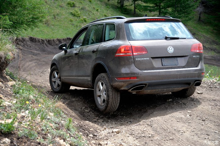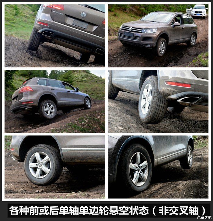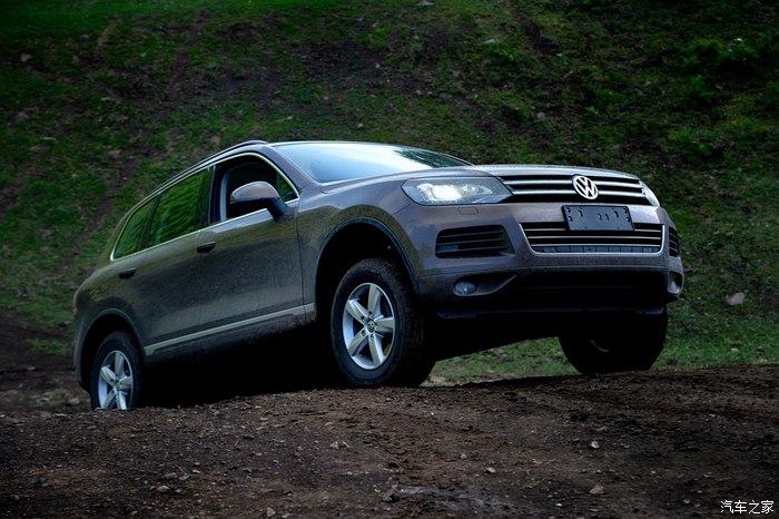 在途锐遇到车轮脱离地面的情况时,几乎看不到空转,就立即被有效地、完全性地制动了。这时,由于空转轮被制动,可以接受更大扭矩传输,轴上的另一侧的着地轮也就相应地获得了更大的行驶动力(差速器的扭矩均分)。加上途锐发动机强大的动力输出,很容易克服困难,脱离险境。大家可能记忆犹新的是,不少车的四轮辅助系统在车轮离地时,不会瞬间做出有效的制动反应。所以,我们经常会在视频中看到离地轮的疯转,然后再被制动。并且在制动过程中也有“偷”转而损失动力的情况。