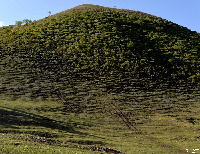 翻过山顶后,看到了又一知名的地方--传奇大坡。这里的状况也有了改变,坡下拦起来大土堆,看来是禁止车友们到这里玩大坡了。但无论如何,如果是出于保护环境、呵护植而禁止践踏,我绝对赞成和支持!