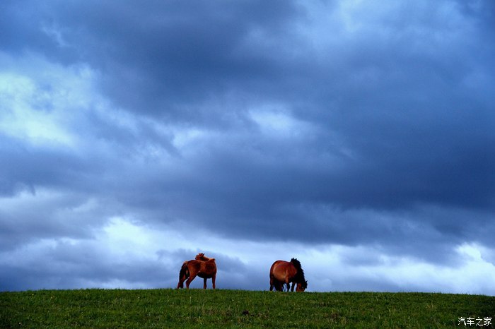 来到了一处小山顶,看到马儿悠闲地吃着草。对人来说这里也是悠闲意得的好地方啊。