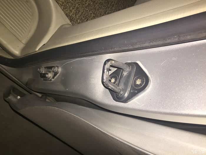 中门格登格登响是吸得不够紧了,上点胶布就可以完美解决了,这是没緾的锁扣,原车的胶皮都掉了