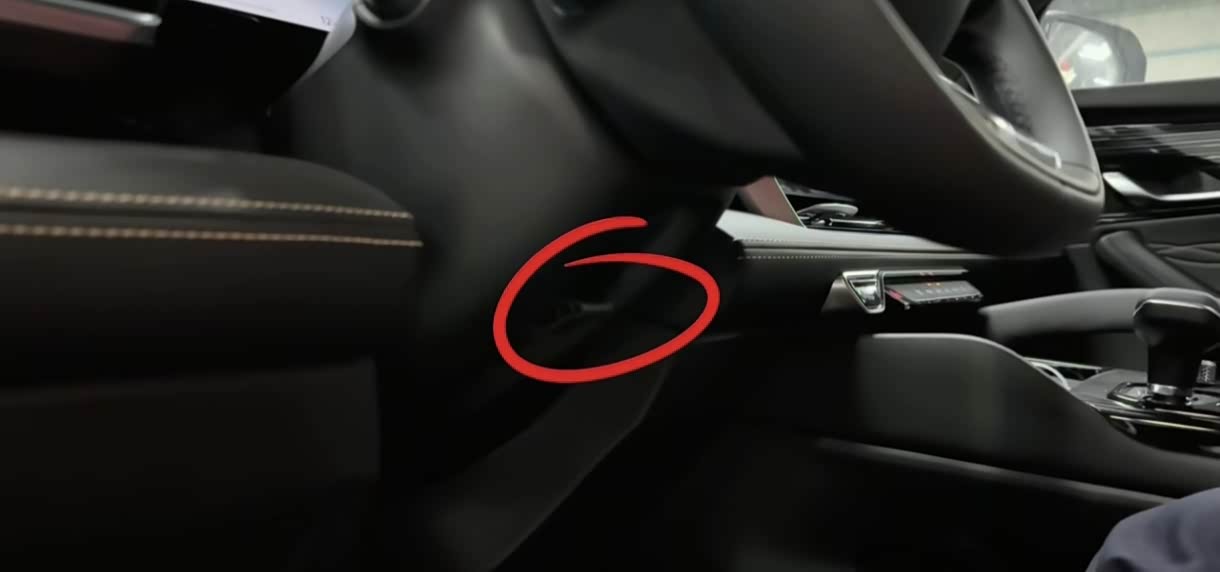 2. 解锁方向盘:把扳手向下扳到底,能听到“咔嗒”一声,此时方向盘就进入“可移动状态”;