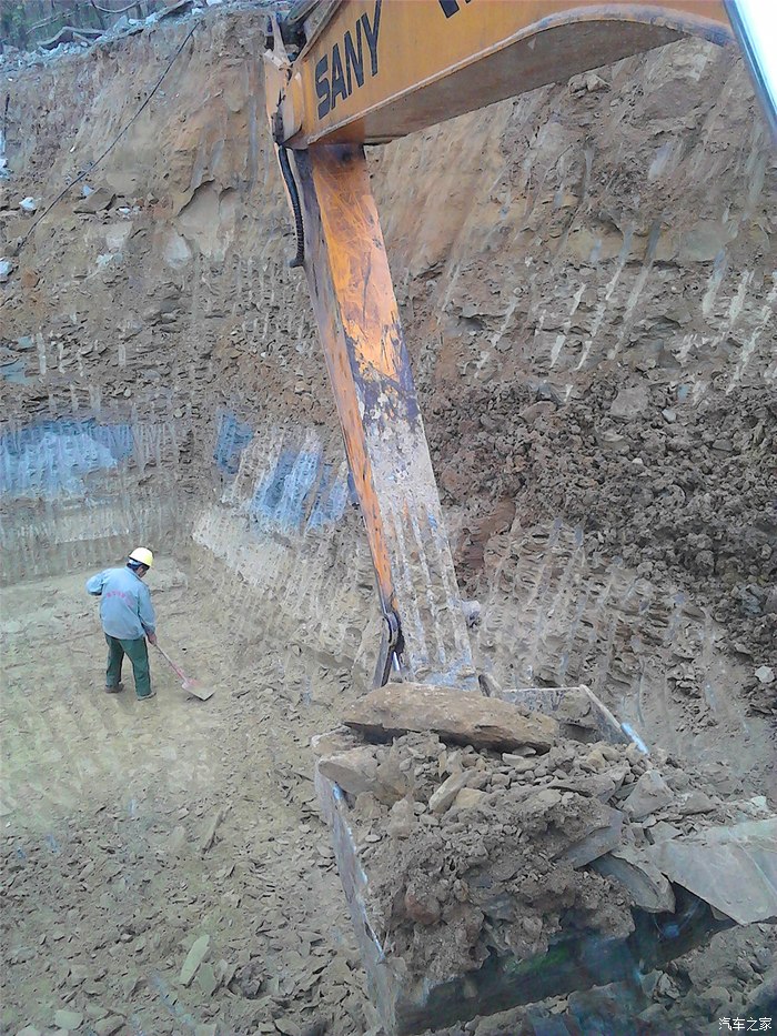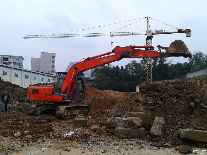 下午工地老板不打款,没钱垫油钱了,就停了,等一个日立挖机挖