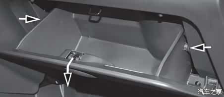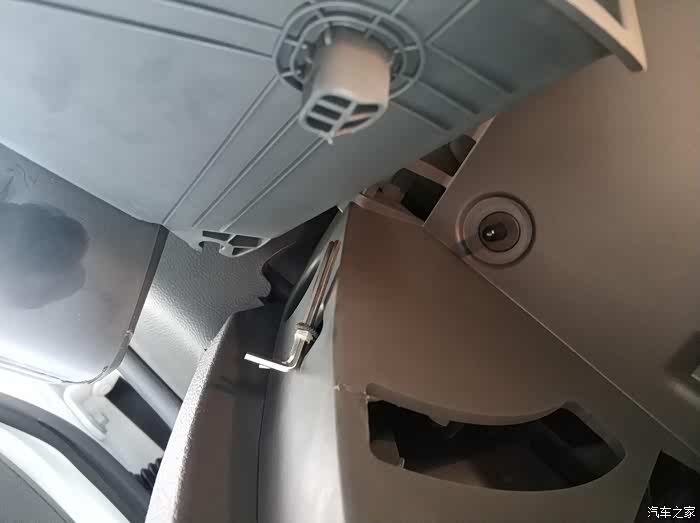 首先打开手套箱,把这根线取下来,取下来后线会缩回去,不用担心,事实证明不会完全缩进去。大胆的放手。