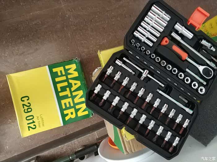 准备工作,去网上买适合大宝的滤芯,我买单是曼牌,某东网购的,个人觉得骑车用品还是某东,80多点,大宝曼牌的型号是C29012,马勒的型号就不太清楚了,具体可以去官网查查。准备好工具,其实换空滤主要用到