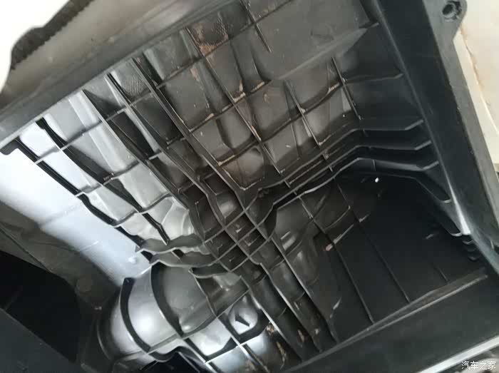进气口底部,看这有好多灰。因为前两天去保养的时候,4点取开吹滤芯的时候也吹了下这里,不然更脏,什么叶子,虫子,所以滤芯确实抵挡了好多东西。