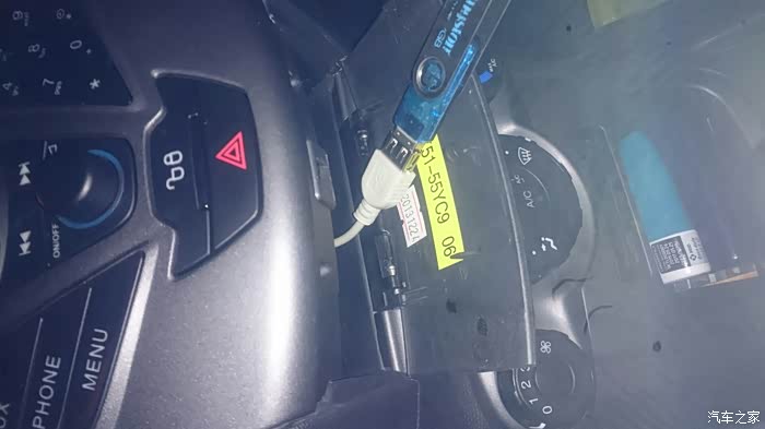 个人觉得比放手套箱方便,比开孔也方便,有需要的朋友可以参考一下,这个小盒子就是按键控制面板和空调之间的位置,平时也没什么用,正好放usb线了