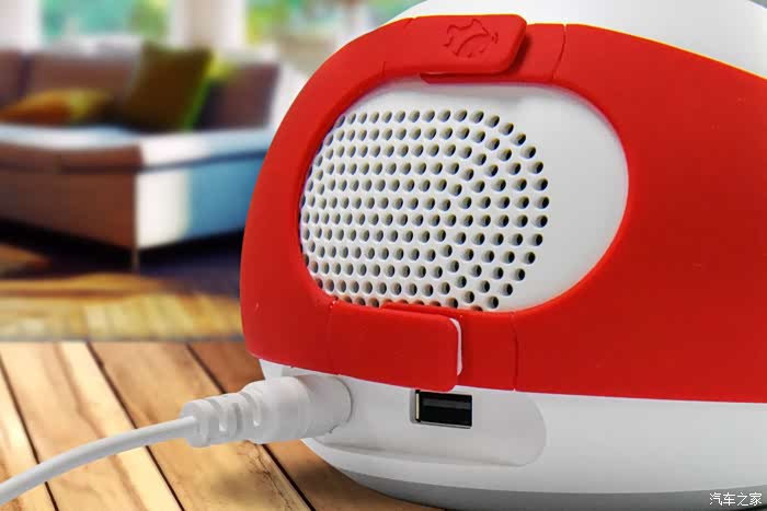 小鱼真身,小鱼在家人工智能机器人的主体。还是穿上红色外套好看点。屏幕两边有两个小孔,是两个麦克风