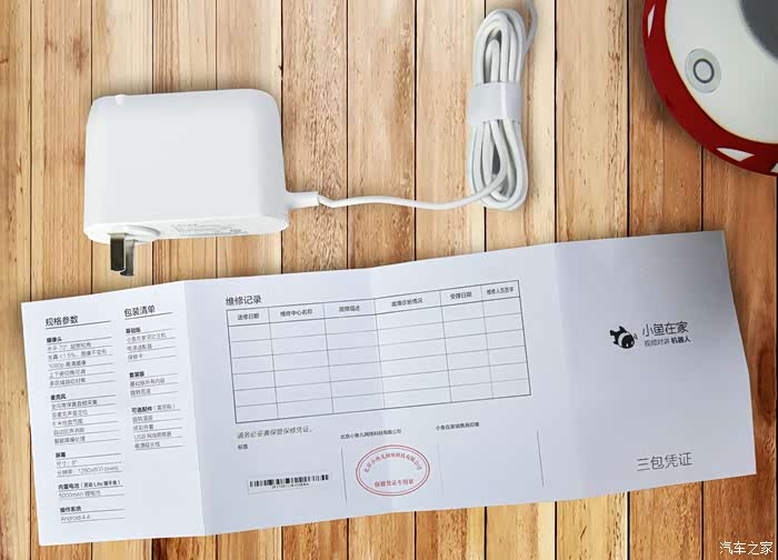 小盒子是电源适配器,适配器的个头比厂家的手机适配器要大上两倍……红色的硅胶是小鱼在家天猫版外套……就是小鱼在家机器人的衣服