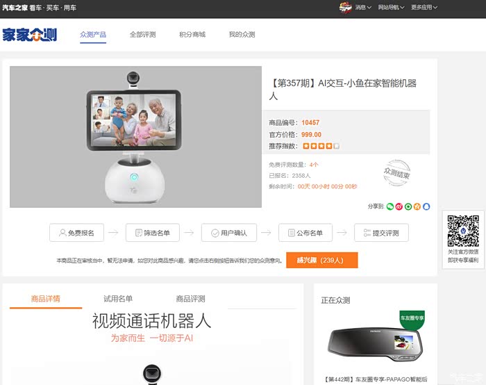 这次测评的商品,跟 家家众测【第357期】AI交互-小鱼在家智能机器人 是同款。关于这个测评相关 更多家家众测 车友用户试用测评:https://zc.autohome.com.cn/10457?pvareaid=undefined