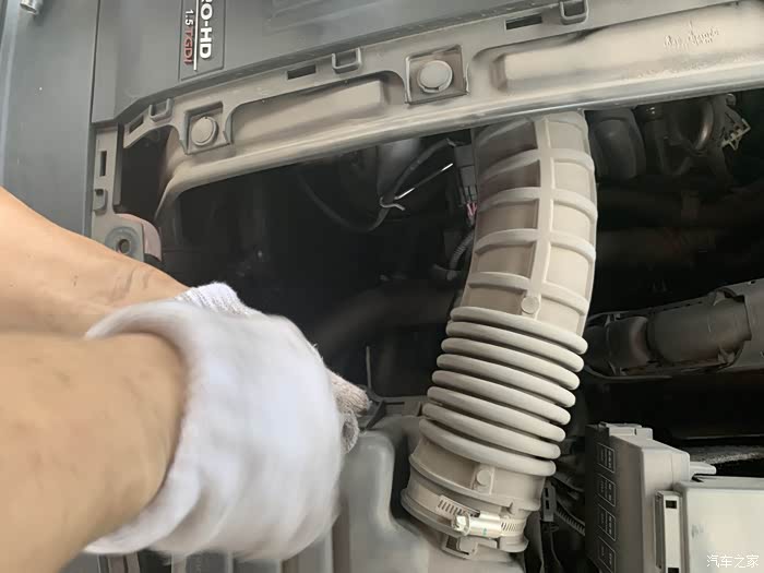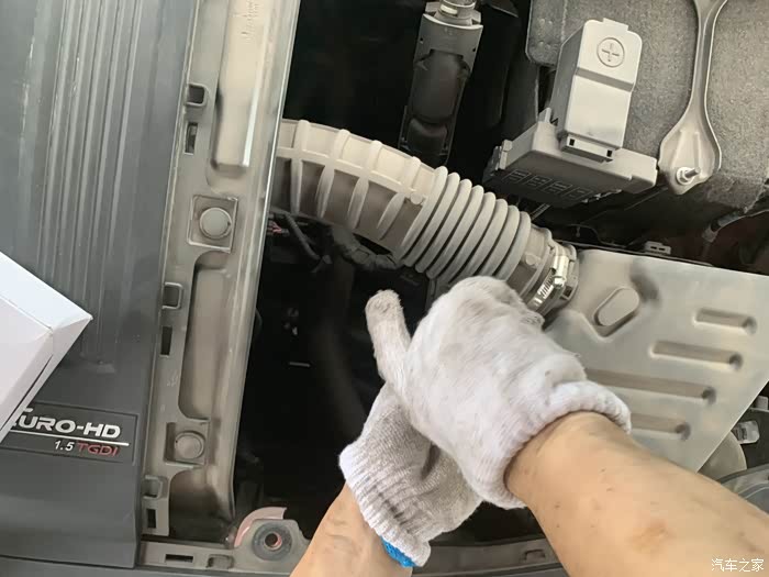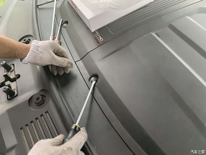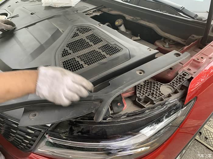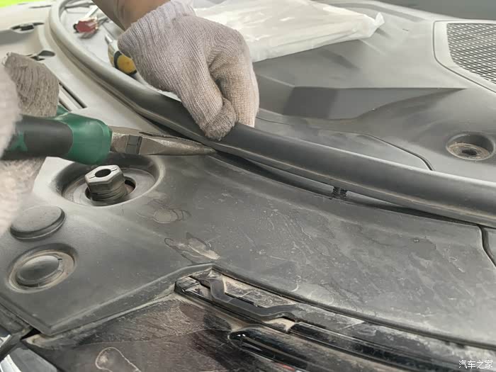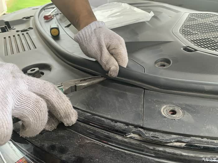 拆完之后,就是拆引擎的密封条,因为之前没有准备钳子,这个还是我后面拿的。各位小伙伴按照我图片中的方式进行拆卸。