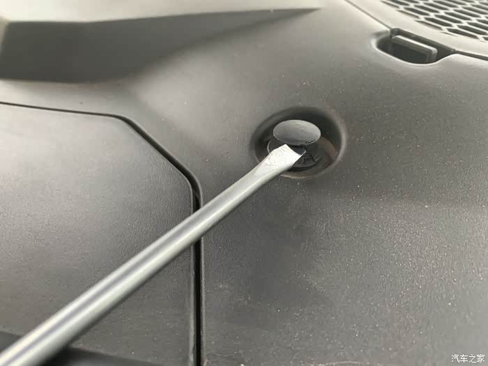 打开引擎盖后,我们会看到三个塑料卡盖。