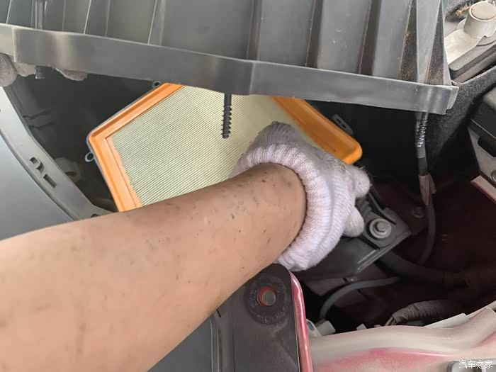 将新的空气滤芯放进去(请忽略我比较脏的手)