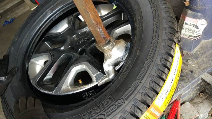下原车胎。注意要避开气门芯胎压传感器。
