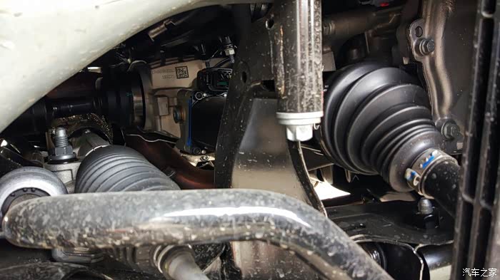 后桥的传动轴,还有连杆,靠前的两边固定的,后面这个是单摇臂。1.4T的是夹着的。